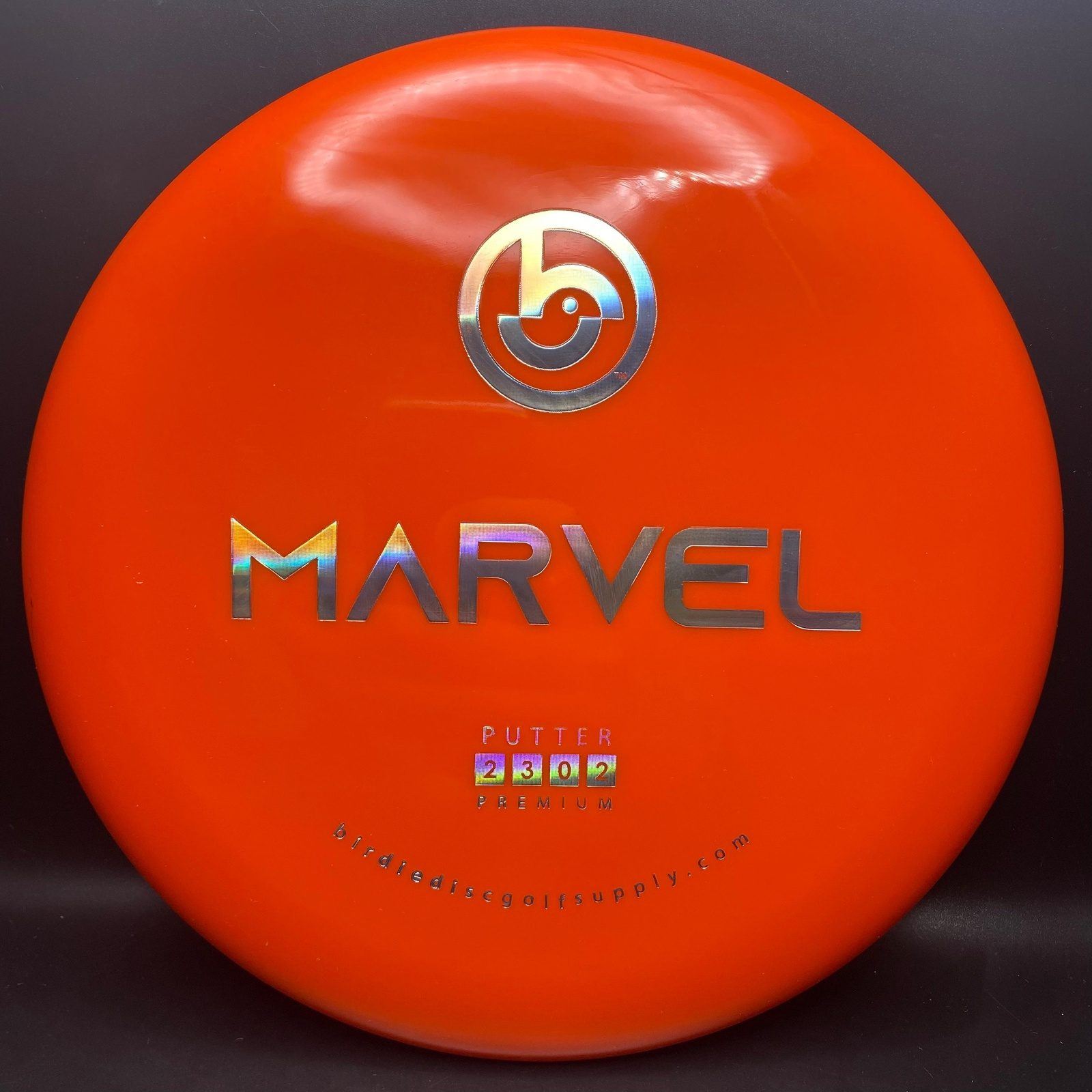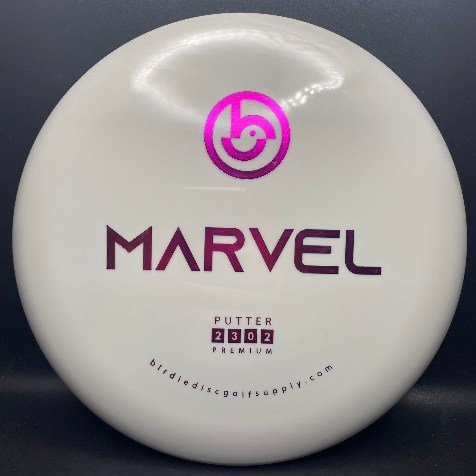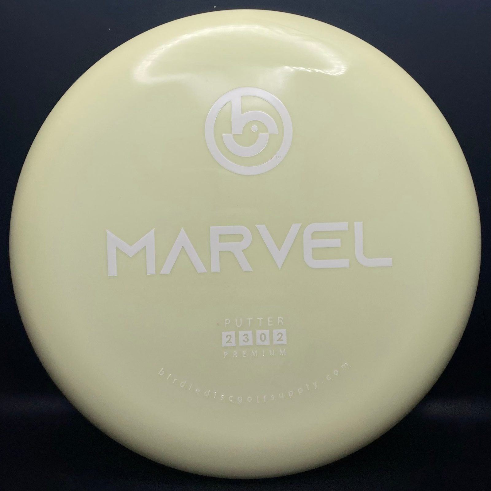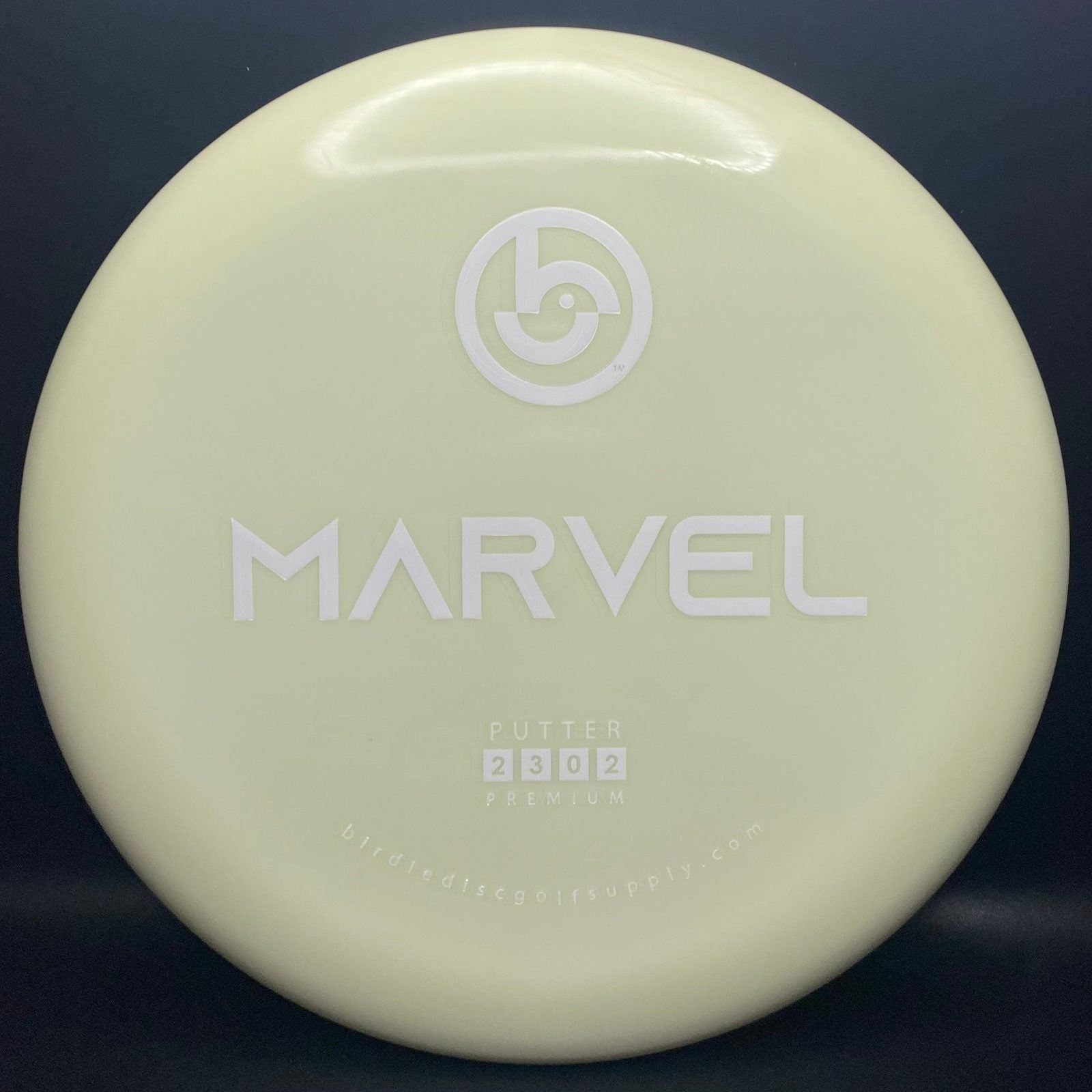 The Marvel by Birdie Disc Golf Supply is a straight to slightly overstable beadless putter and is very consistent for putting and throwing alike. The Marvel takes well to spin putts as well as push putts.