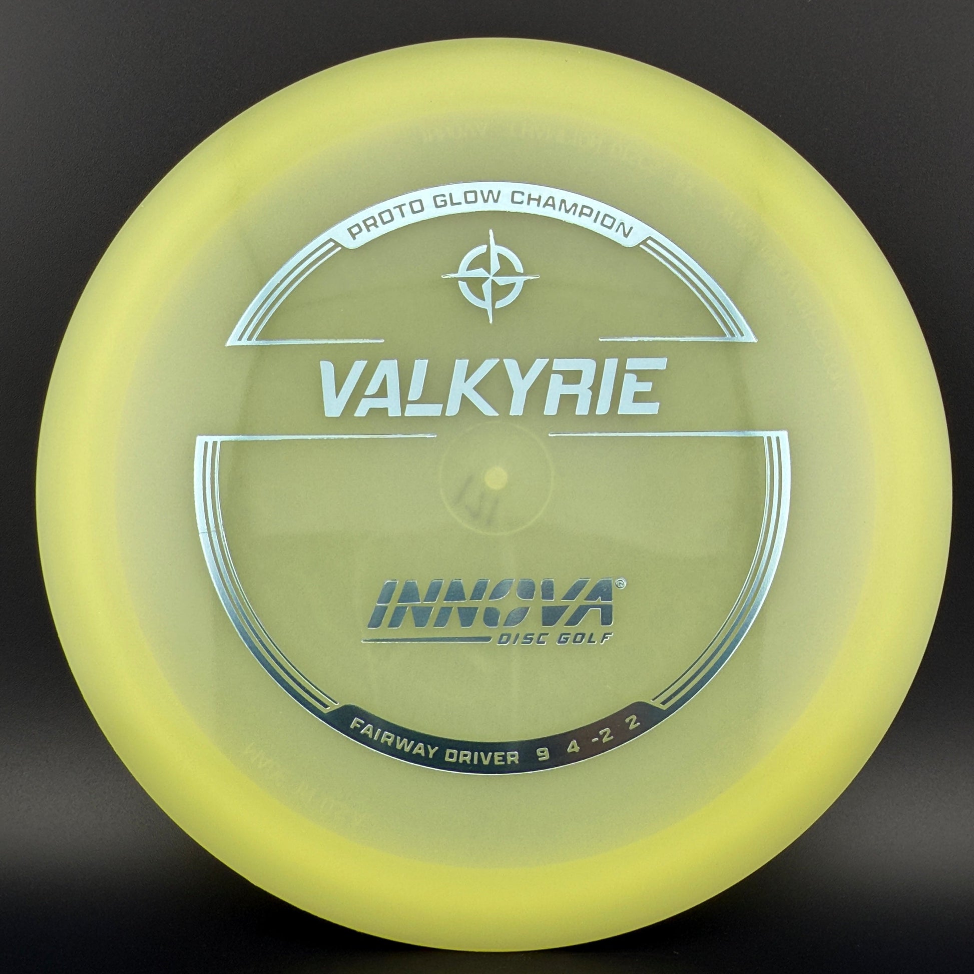One of the most popular drivers in the world, the Valkyrie held the world distance record for a decade. This is a stable flying distance driver with a good degree of high speed turn and fade. The Valkyrie can be used by players of all skill levels. It is a good distance driver for newer players developing form, and can be used for turnover shots and rollers for more advanced players. Because of the popularity of the Valkyrie it is available in just about every plastic Innova has to offer; DX, Pro, Champion, Star, and even Glow Champion.